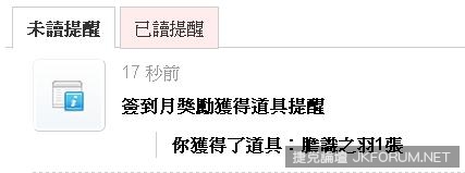 上面還有寫到簽到到多少天有那道不同的獎勵喔!