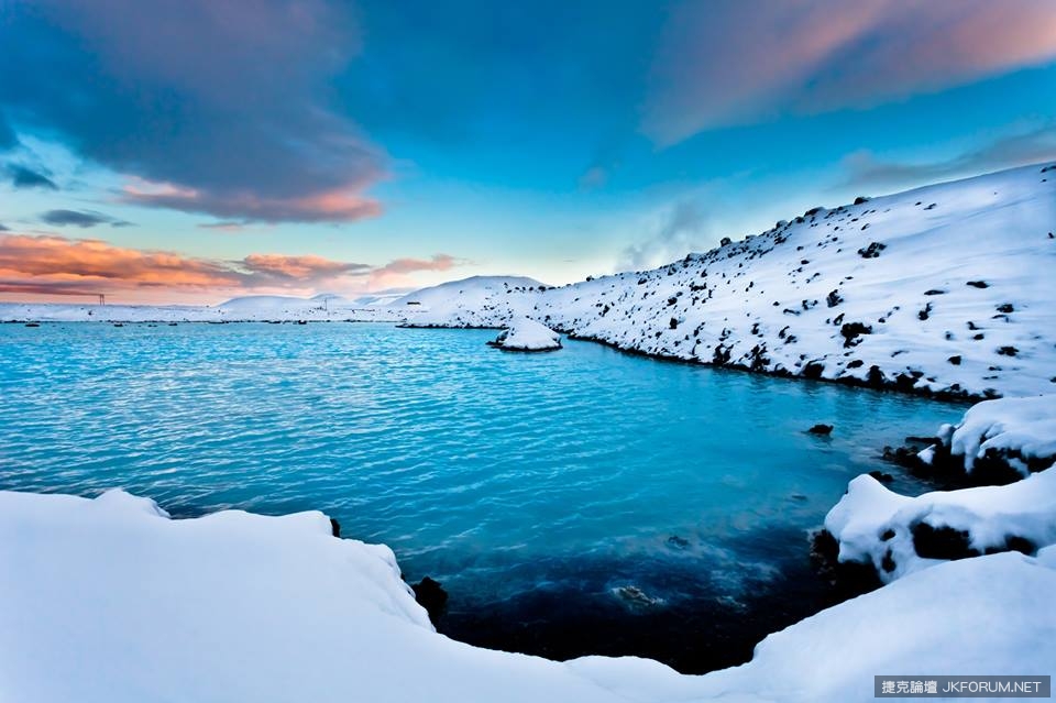 藍湖,冰島西南部,是冰島最大的旅遊景點之一。藍湖所在地是地球上地下岩漿活動最為頻繁的區域之一,這種活動加熱了藍湖,使得水體蒸騰,藍湖的礁湖地區水溫平均在40 ℃左右,水體擁有豐富的礦物質,在藍湖泡溫泉,可以幫助治療一些皮膚疾病。