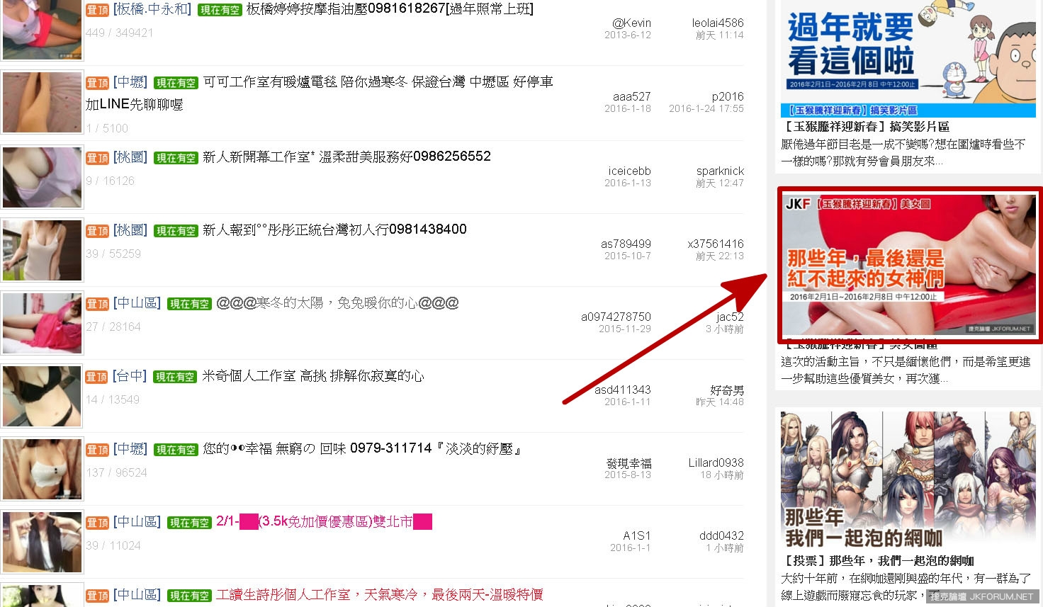 紅色框起來的那個是活動吧....那哪是廣告...大大妳框錯了  但真的有很多枯腰的廣告 還是色情的....