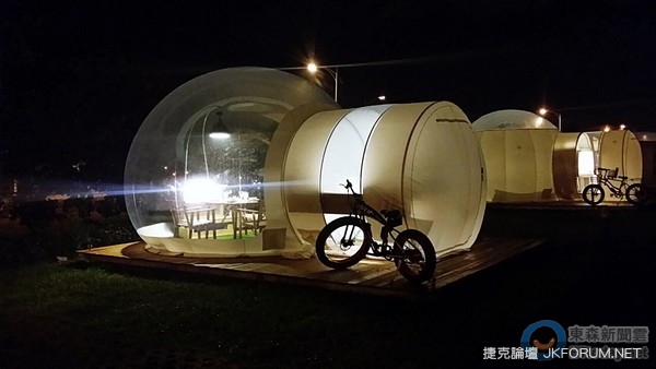 ▲因燈光而在黑夜中發亮的泡泡窩,宛如發光的透明水晶球。(圖/泡泡窩總監周嵩智授權提供,請勿隨意翻攝)
