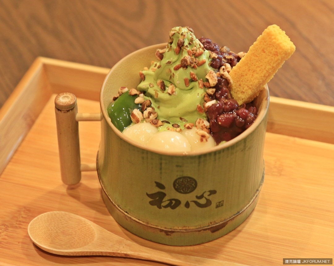 宇治金時這道日式刨冰大家都很熟悉,初心菓寮的刨冰機跟台灣傳統冰店不同,是從日本進口,刨出來的冰是顆粒狀,融化速度慢之外,口感也較好。宇治金時配料還蜜紅豆、白玉、抹茶寒天,然後再淋上特製的抹茶蜜汁與沖繩黑糖蜜,清爽香甜。徐襄琦還說,他們家的宇治金時裡頭還有個小秘密,就等大家親自來體驗。