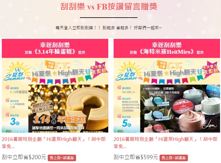 暑期特別企劃─『Hi夏祭•High翻天』本週刮刮樂有哪些新好康>>>刮刮刮不停