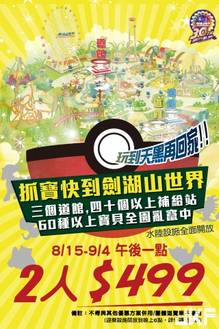 抓寶就到劍湖山世界!3個道館,40個以上補給站,60種以上寶貝全園亂竄中!