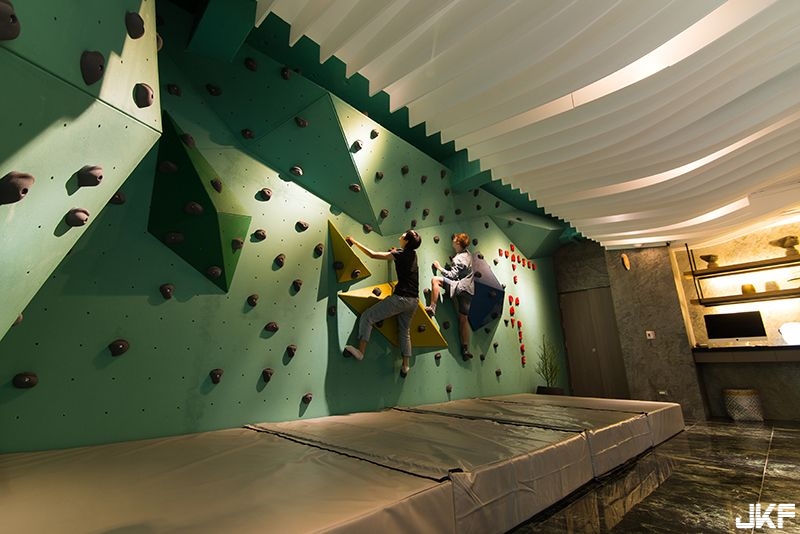 3尺高的室內攀岩場學當蜘蛛人。(照片/承億文旅提供)