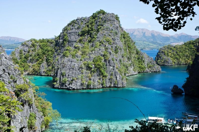 班機飛抵Busuanga布蘇安卡機場,在30分鐘的車程中,可以感受空氣中瀰漫著悠閒海風,隨著景色變換,夢寐以求的現代伊甸園科隆島,也跟著映入眼簾。科隆島上有7個被陡峭石林環繞的鹹水湖,其中,靚湖(Kayangan Lake)曾獲選為「菲律賓最乾淨的湖泊」!要到靚湖之前,還得先鍛鍊一下腳力,爬了一段小坡路後,就能看到令人讚嘆的山中湖秘境之美。