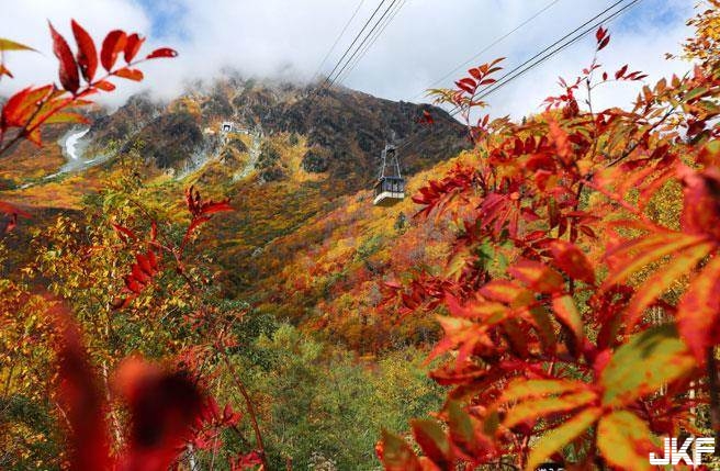 除了隨著季節的樣貌變化外,秋日的立山黑部還能隨著海拔高度的不同而有不一樣的景色,搭乘纜車,從四面八方感受被繽紛環繞,從空中往下俯瞰紅得似火、金黃燦爛的山谷,這樣的視覺衝擊,絕不輸冬日雪壁帶給你的震撼。