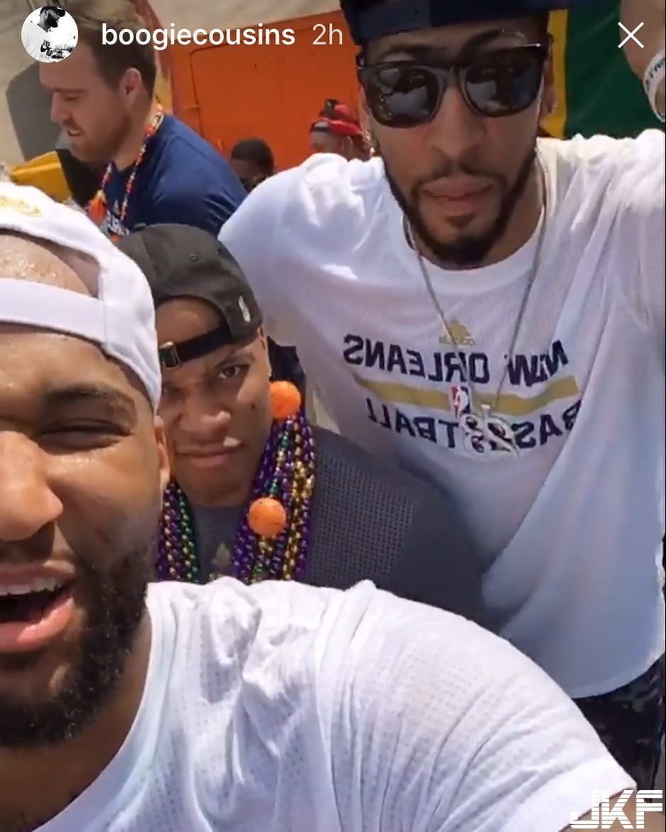 這個不是聯盟技術犯規王、鵜鶘「表弟」卡森斯(DeMarcus Cousins)嗎?什麼時候跑去當電子花車女郎了?誤會一場啦,原來這是紐奧良當地的「肥胖星期二」(Fat Tuesday)慶祝遊行活動,初來乍到的表弟特地和好隊友「濃眉哥」戴維斯(Anthony Davis)一同站上花車遊行。一向硬漢風格的表弟,難得露出搞笑本領,不僅黃色內褲當成頭帶直接帶上去,甚至還拿起另一件在空中甩。
