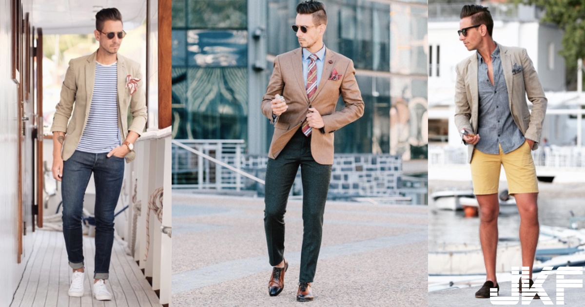 Sergio Ines的風格偏都會紳士,他擅用西裝外套搭配各種單品打造出不同樣貌,打破一般人覺得西裝外套只能用來出現在正式場合。Sergio示範各種風格穿搭,包含整套正裝、將西裝褲換成牛仔褲或短褲營造休閒感,或是利用不同領口的襯衫、Polo衫或亨利領等細節轉換,讓看似一成不變的穿搭擦撞出不一樣的新鮮感。