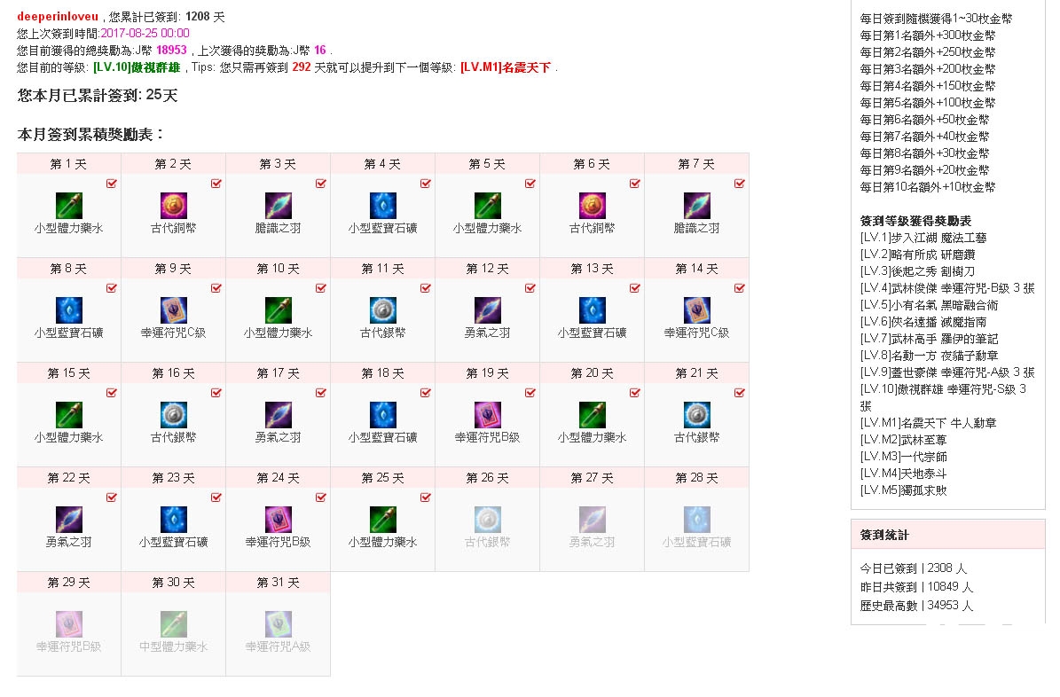 如果您都每日簽到大概會跟我一樣(如上圖)