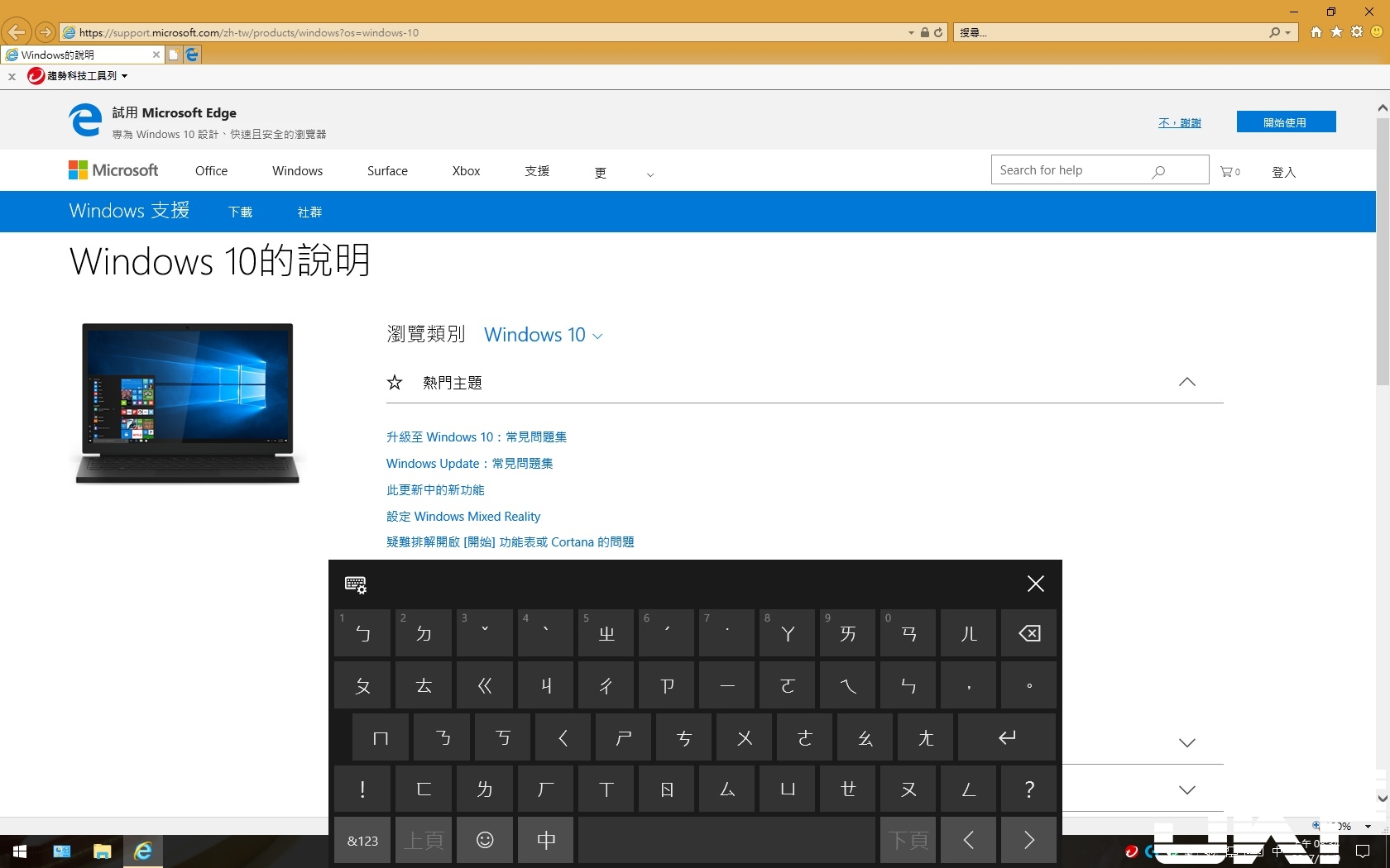 開機有很高的機率會自動開啟網頁和觸控鍵盤,如下圖。