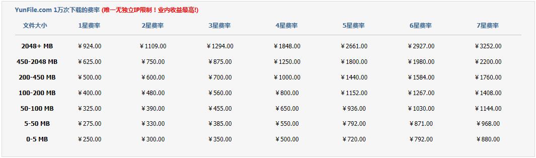 YunFile.com 1萬次下載的費率(唯一無獨立IP限制!業內收益最高!)