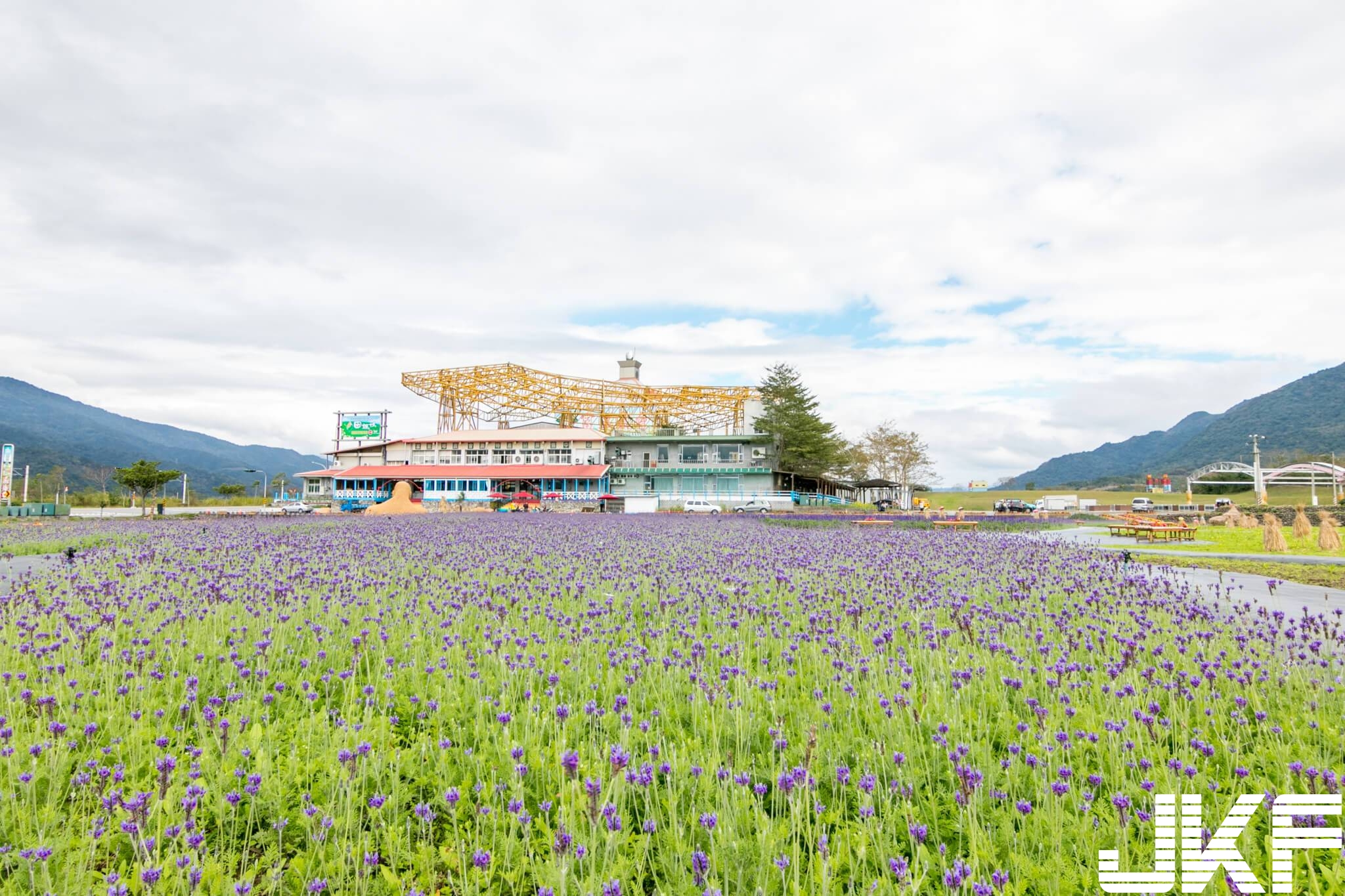 滿滿的紫色鼠尾草花海,看到那棟建築了嗎?裡面就是農會的展售中心,除了可以購買到在地的農特產外,二樓也有提供便當,能坐在寬敞的餐廳內用餐喔!