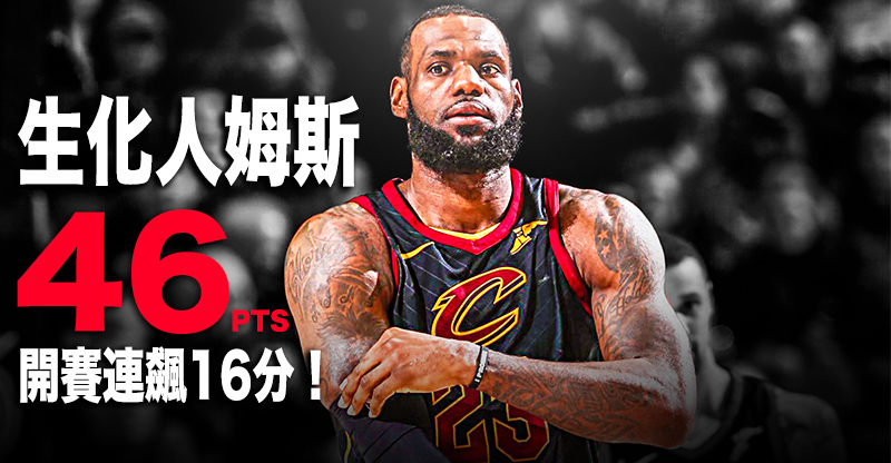 在騎士季後賽首場失利後,各方人馬開始酸爆「詹皇」姆斯(LeBron James)和他的快樂夥伴們,但被人們暱稱為「生化人」的33歲姆斯今天真的「The 不讓」,一開賽就硬起來連幹16分、全場狂轟46分,用高達7成的命中率帶領球隊獲勝,最終就以100比97擊敗溜馬,將系列賽扳成1比1平手。