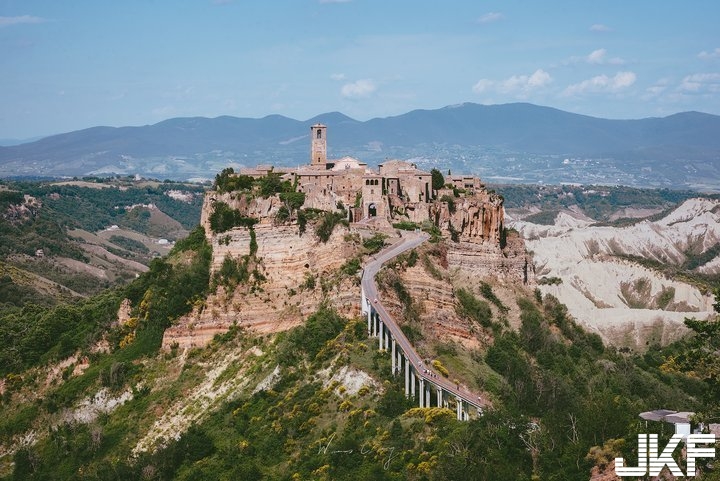 我是從奧維多Orvieto搭客運而來,大概因為此地已成亞洲人的觀光熱點,車上要去芝維塔的都是亞洲人(一對日本情侶、一對台灣情侶、一個香港大叔),城裡還有旅行團的中國觀光客。從車站到芝維塔大約要步行15分鐘,穿梭在寧靜的小鎮的街道裡也是不錯的體驗。