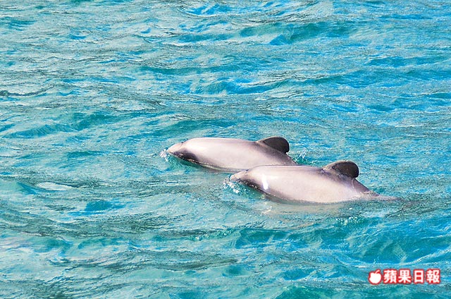 船夫說,在阿卡羅瓦外海,僅有2%的機會看不到,其中又以1、2月為最佳追海豚季節。赫氏海豚最大特徵在於背鰭,圓形、如鐮刀的形狀,也讓牠有米老鼠海豚的可愛封號。突然一聲驚呼「There!」約莫30隻海豚就在船邊繞呀繞,讓人為之驚豔,可愛的牠們讓快門聲不曾停歇。