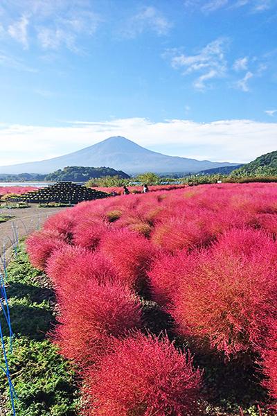 河口湖畔的大石公園有著絕美的風景,不僅有富士山映入眼簾,園區一年四季都有不同的花海美景,其中最著名的是「逆富士山」,富士山的身影倒映在清澈寂靜的湖水上,呈現令人讚嘆的景色。