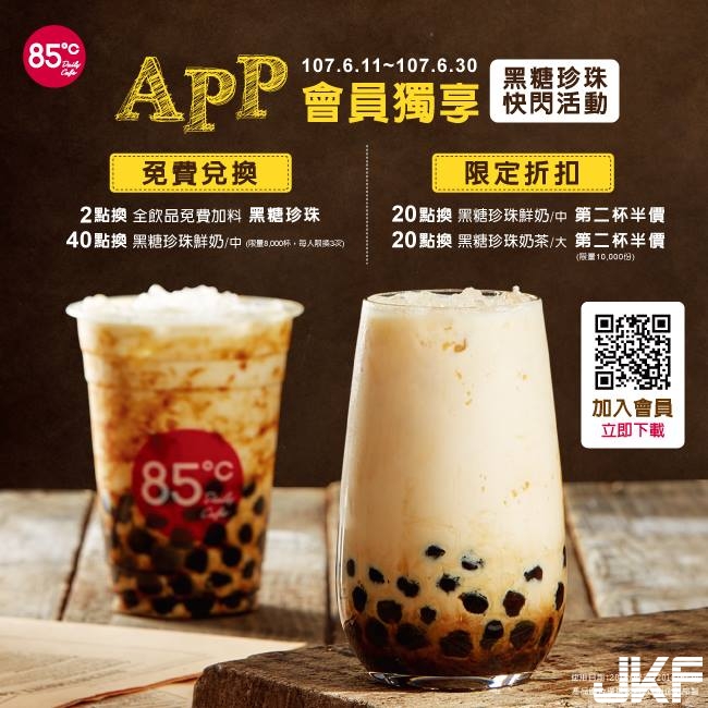●消費集點滿2點以上,即可兌換食尚最夯的黑糖珍珠飲品歐