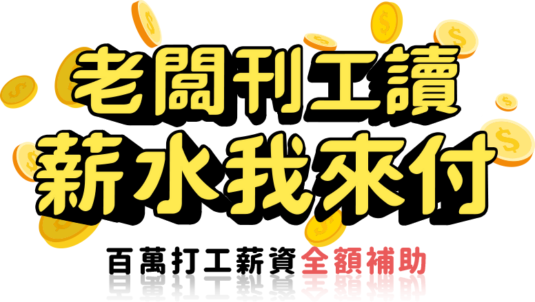 成功錄取一位工讀生之後, 即可申請「全額補助」該的薪資!名額有限額滿即提前終止。