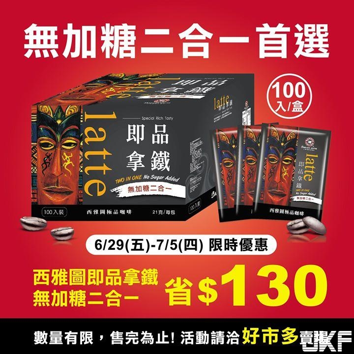 ●西雅圖《即品拿鐵無加糖二合一》歐買尬的現省NT$130