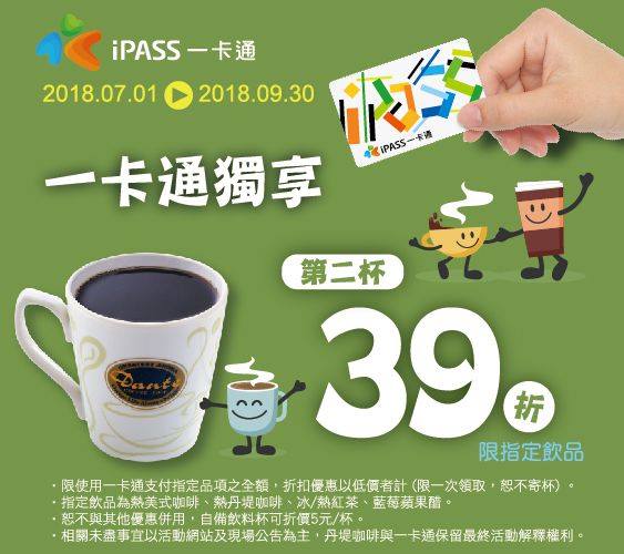 ●持一卡通支付,指定飲品獨享第2杯39折。