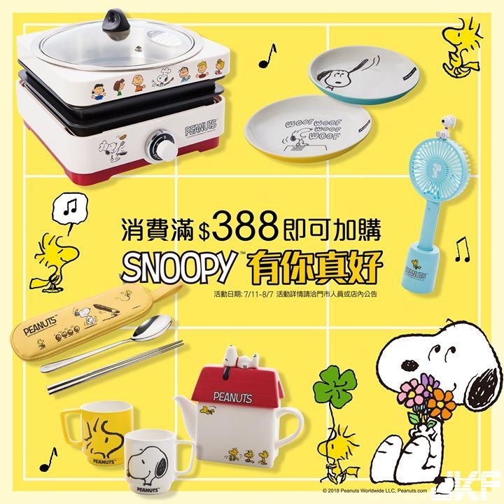 ●7/11 – 8/7 消費滿$388即可加價購SNOOPY列商品1個