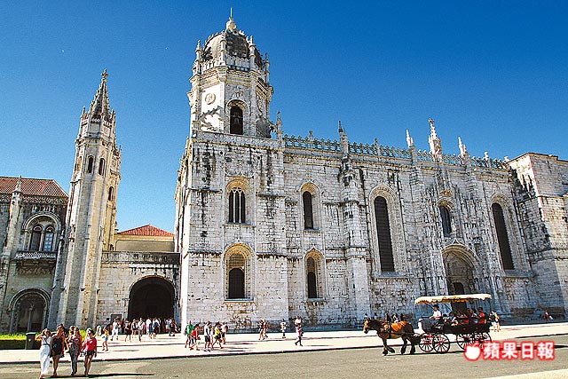 太加斯河出海口作為防禦之用的貝倫塔(Belem Tower)、以及傑若尼莫修道院(Mosteiro dos Jeronimos),就是最佳代表。其中工期橫跨一個世紀之久的傑若尼莫修道院,白色花岡岩砌成的外觀宏偉得令人咋舌,挑高的內部空間佈滿繁複的彩繪玻璃,八角形石柱更在屋頂開散出拉丁十字形式的漂亮幾何圖形…