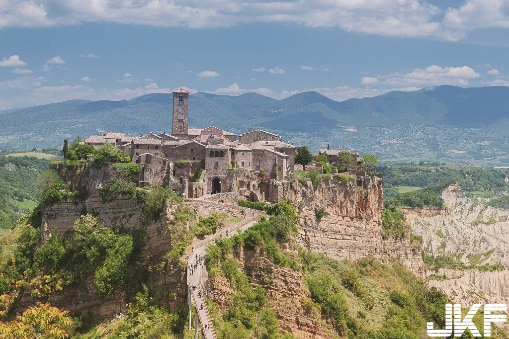 當然啦!第一個要介紹的歐洲天空之城,就是據說是宮崎駿動畫《天空之城》原型的義大利白露里治奧(Civita di Bagnoregio),建於兩千五百年前的白露里治奧古城(Civita di Bagnoregio),因為只靠一條狹窄長橋與外界相連,周邊是一望無盡的險崖與荒野,從遠處看就像一座空中的城堡,因此被稱為「天空之城」。