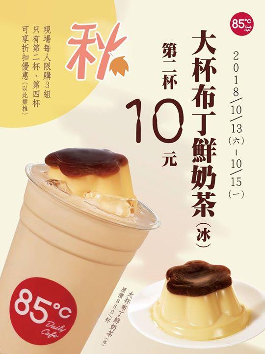 ●85度C 大杯布丁鮮奶茶第二杯10元(限冰)