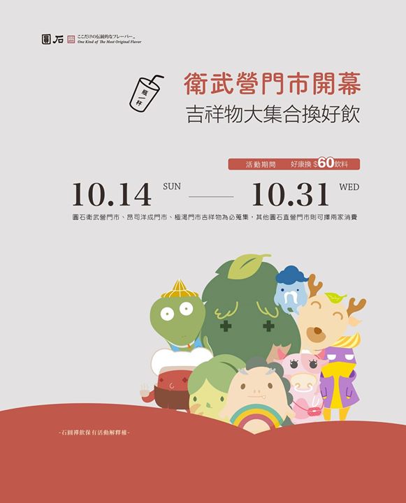 ●衛武營圓石開幕,吉祥物大集合,兌換60元飲料一杯!